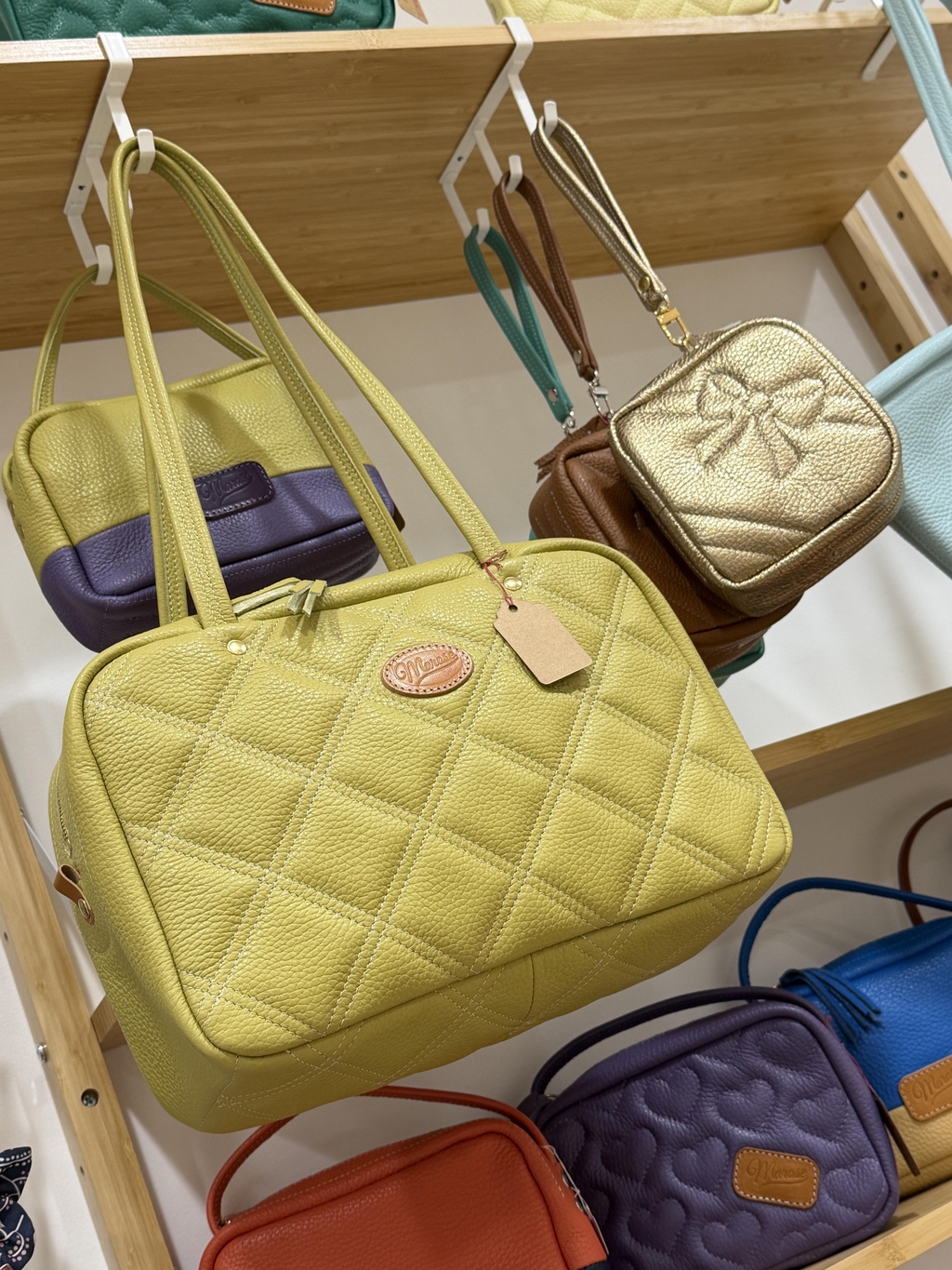 Avec Marose, Maud s'amuse: couleurs vives, cuirs glossy et matelassés girly, rien n'est trop audacieux pour réveiller les classiques de la maroquinerie!